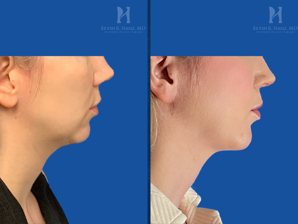 Face Skin TighteningBefore and after profile view following non-surgical jawline and chin contouring at Kevin R. Hanz, MD Aesthetic Plastic Surgery in Dallas, TX. Treatment enhances jawline definition, improves chin projection, and creates a smoother, more balanced lower facial profile with natural-looking results.