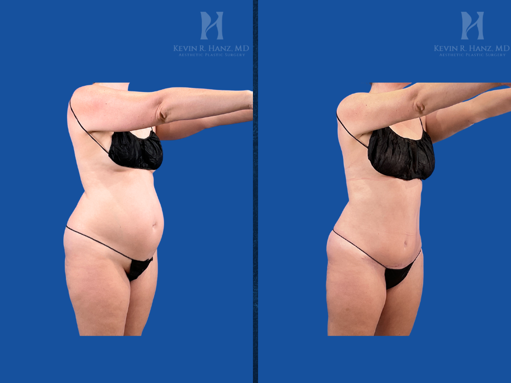 Tummy TuckReal patient transformations show the powerful results of a tummy tuck, liposuction and QuantumRF by Dr. Hanz. Removing excess skin and fat while restoring a flatter, firmer abdomen. From front to side views, the contouring is dramatic yet natural, enhancing confidence and silhouette.